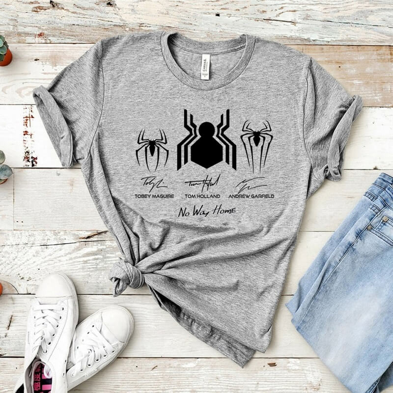 Celebra un momento épico en la historia de Spider-Man con la Camiseta No Way Home. Esta camiseta especial no solo honra la unión de Tobey Maguire, Tom Holland y Andrew Garfield en la aclamada película, sino que también captura la esencia de cada Spider-Man con un diseño minimalista y elegante. Hecha para los verdaderos aficionados, esta pieza es perfecta tanto para uso casual como para mostrar tu fandom en eventos especiales.